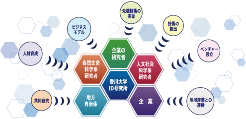 先端的な研究の促進とともに、先端技術の地域での実証研究から、そのリスクを明確化するとともに、社会が受容可能となる技術のあり方をデザインし、新たな社会・ビジネスモデルを実現する研究を、産官と「組織」対「組織」で展開する。